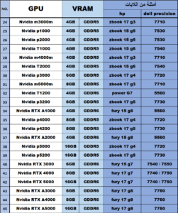 3- كل الكروت المذكورة هنا هي كروت فئة Quadro و الكروت كلها تابعة للابتوب مش ذاكر هنا كروت PC